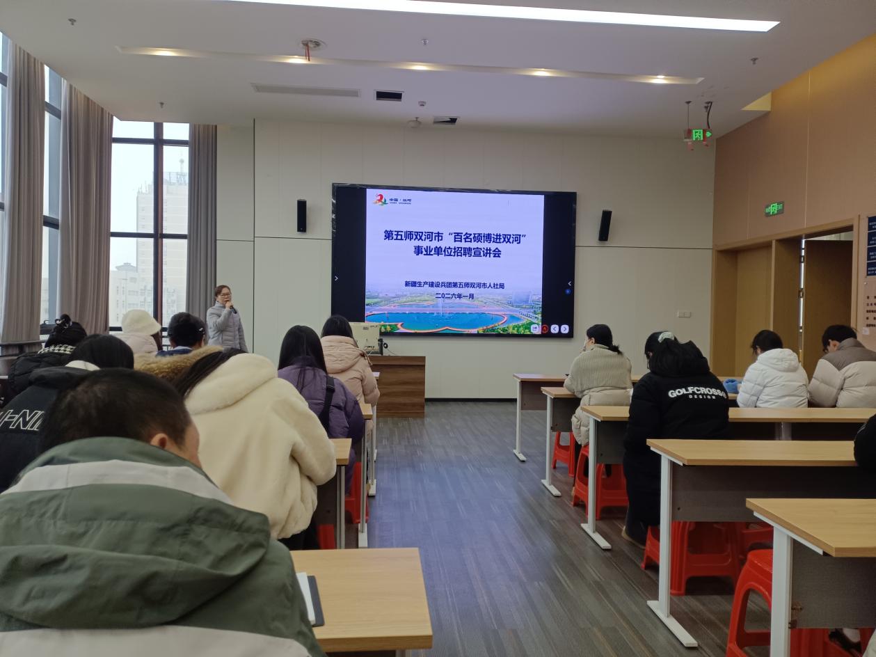 第五师双河市人社局工作人员在宣讲中指出,双河市经济社会保持高质量发展态势,地区生产总值和居民收入稳步增长,展现出良好的发展潜力。作为本次招聘的主体单位,双河职业技术学院紧密围绕兵团“稳定器、大熔炉、示范区”的战略定位,正加快建设特色专业群,持续改善办学条件,为青年人才提供了广阔的发展平台。